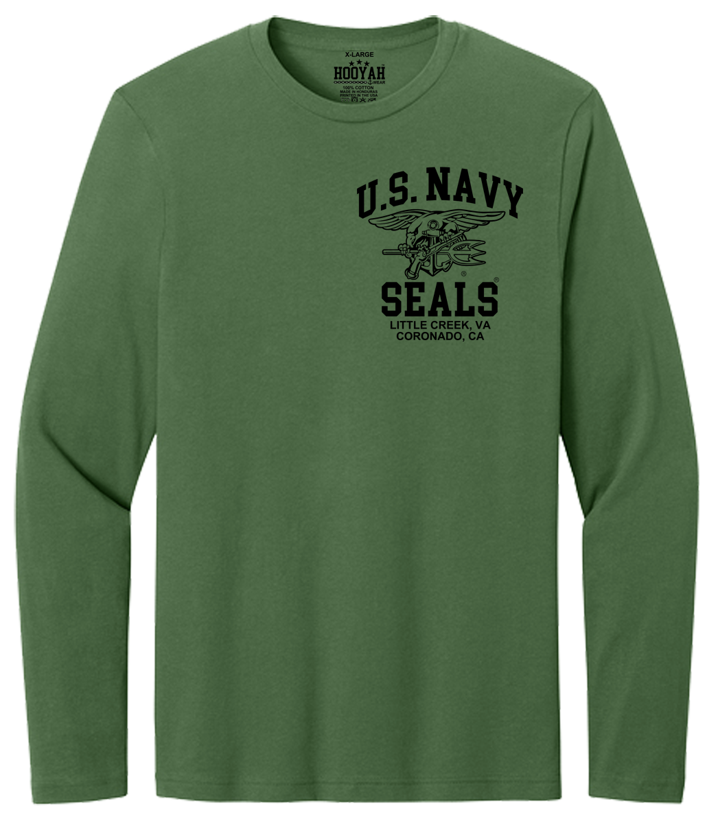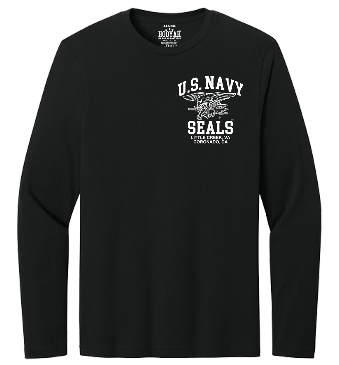 If you are looking for quality U.S. Navy T-Shirts Hoodies and Caps, check out our line of “Hooyah Wear” garments! These garments feature great original copyrighted artwork/graphics by our talented in-house artists. These designs are new, and exclusive to our brand, and not made from boring clip art. The quality and printing is on another Level!